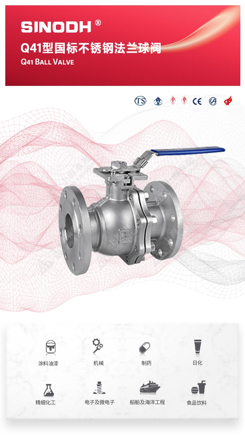 Q41型国标不锈钢法兰球阀,为FH手机平台自主研发生产。本产品设计制造标准符合GB/T12237、GB/T 1 2224标准该产品的球体在介质压力作用下,球体能产生-定的位移并紧压在出口端的密封面上,保证出口端密封。适用于水、溶剂、酸和天然气等-般工业介质,也适用于工况恶劣的介质,如氧气、过氧化氢、甲烷和乙烯等介质。